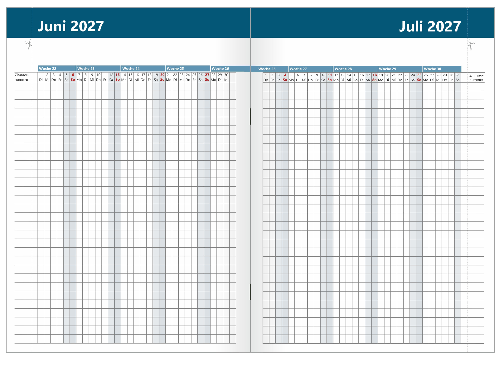 Belegungskalender 2027 mit Zimmernummern