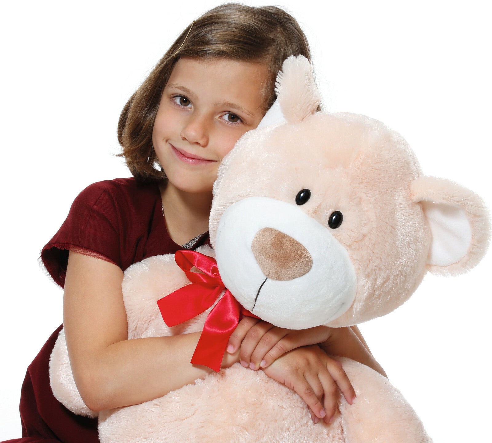 XXL NICI 80cm Kuscheltier Bär mit Schleife Beispielbild, Kind hat Bär im Arm